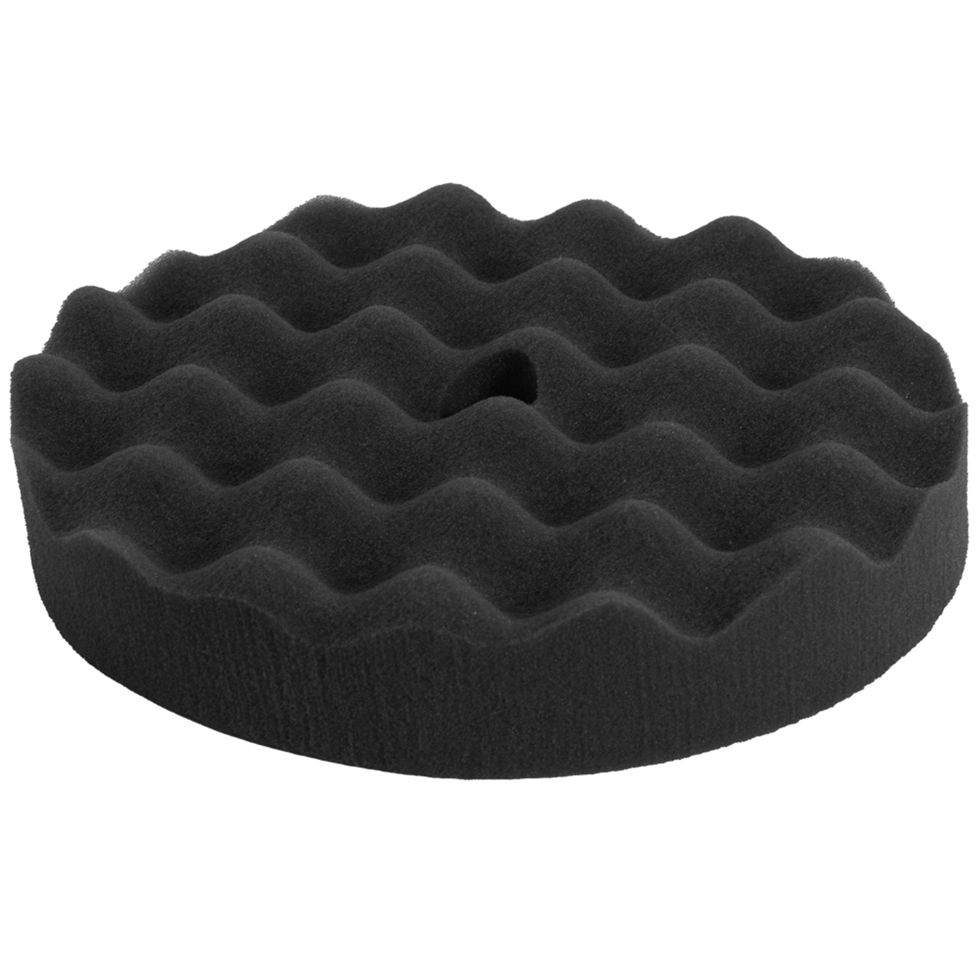 Black final finish 8" foam pad with unique "waffle" design. Loop backing makes it a snap to attach or remove from Velcro backer (VP-10T recommended.) The ultimate in finish, shine and gloss. A must-have for polishing dark colors, luxury vehicles, and collector cars. Use this pad to use in "step-two" for routine "two-step" polishing operations. Made in the USA!2 pads per pack.