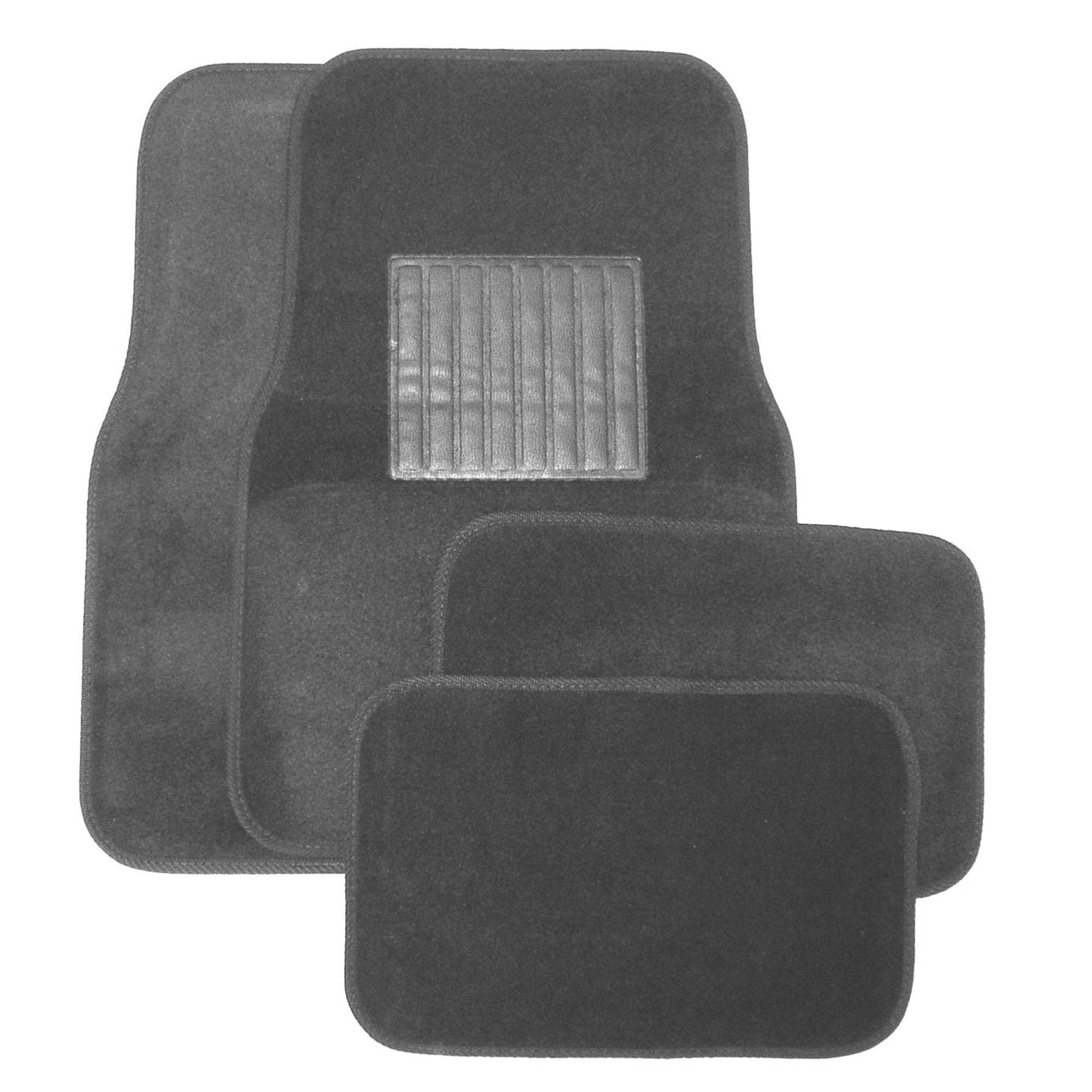 Deluxe 4 Pc. Carpet Mat Set w/ Heel Pad & Nib Back - Black