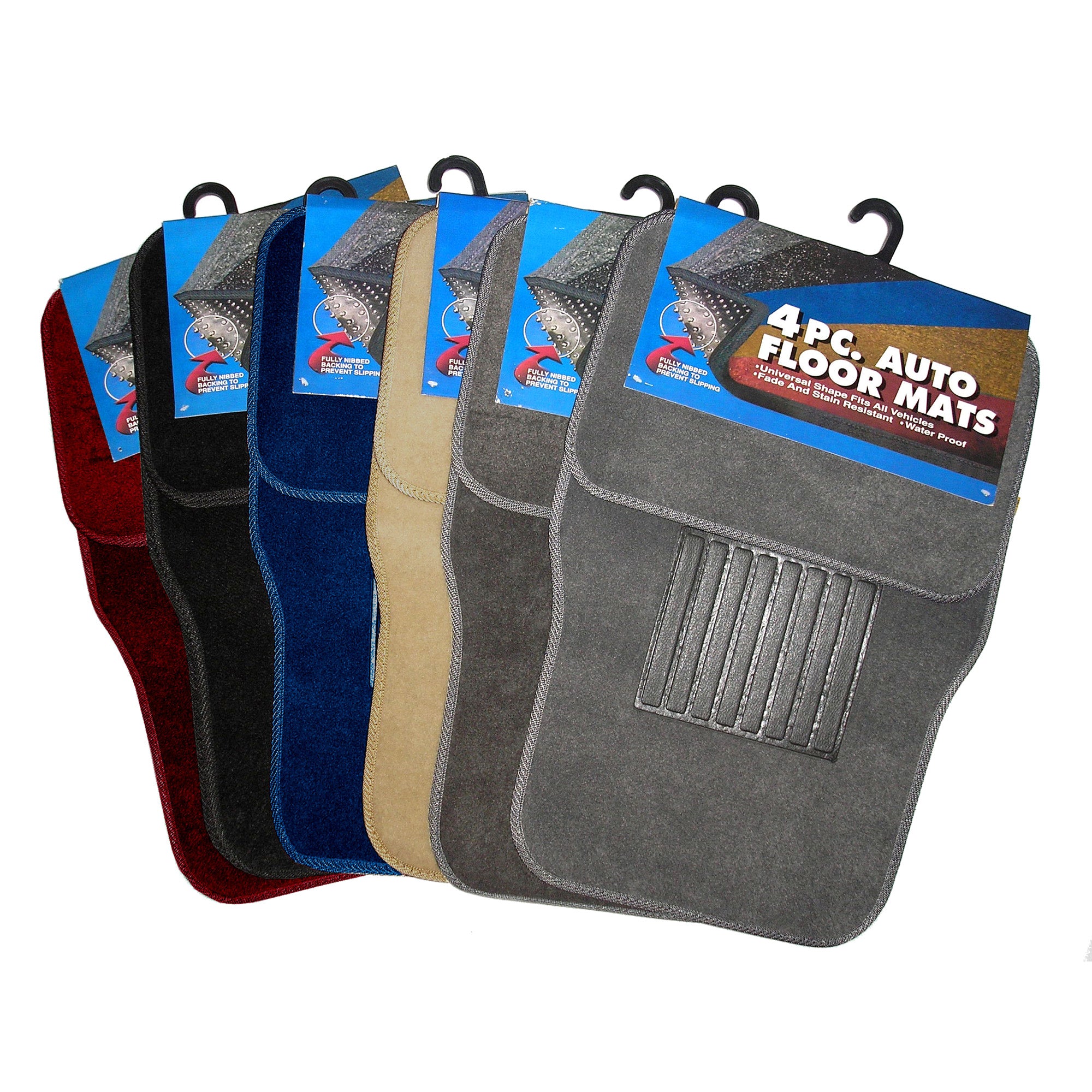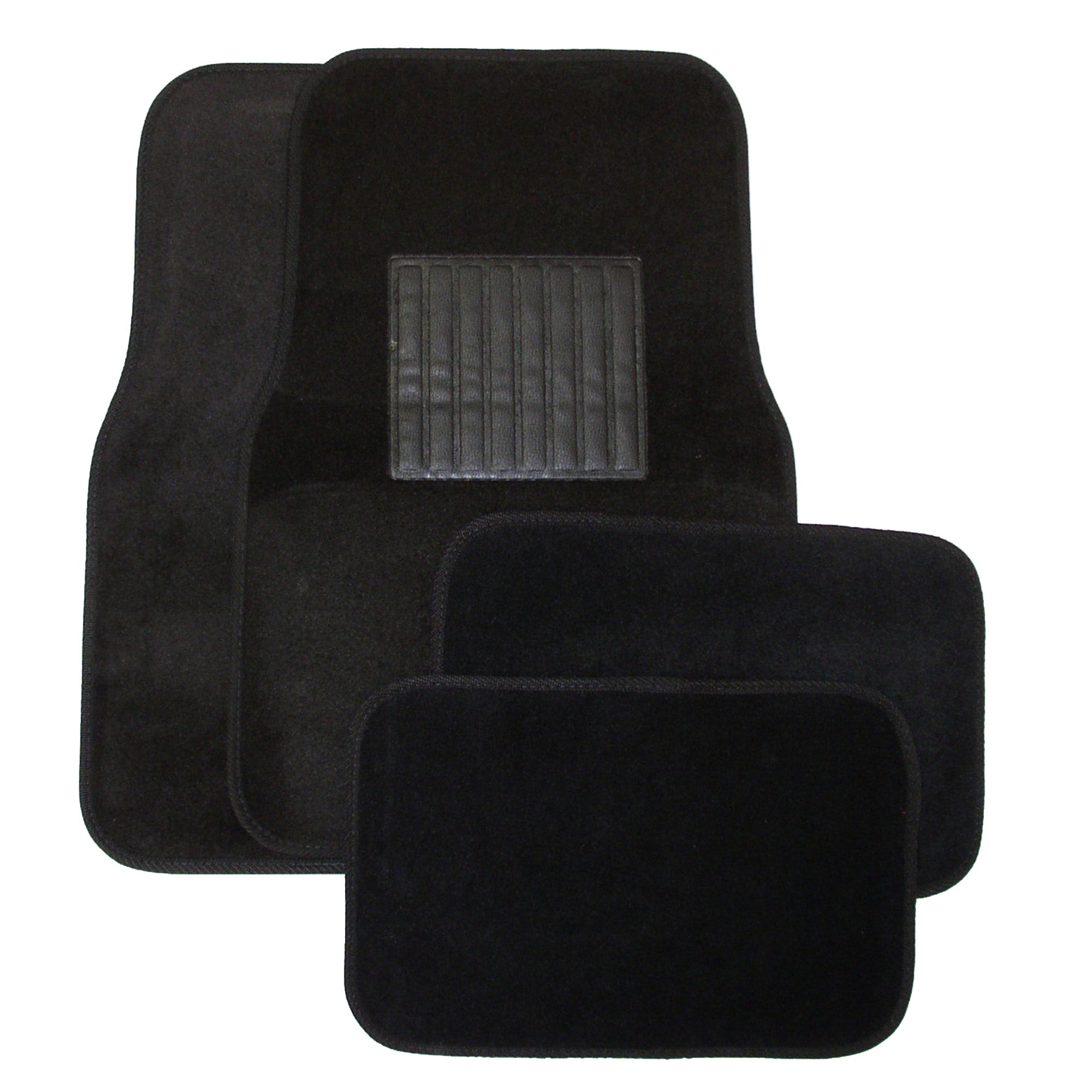 Deluxe 4 Pc. Carpet Mat Set w/ Heel Pad & Nib Back - Black