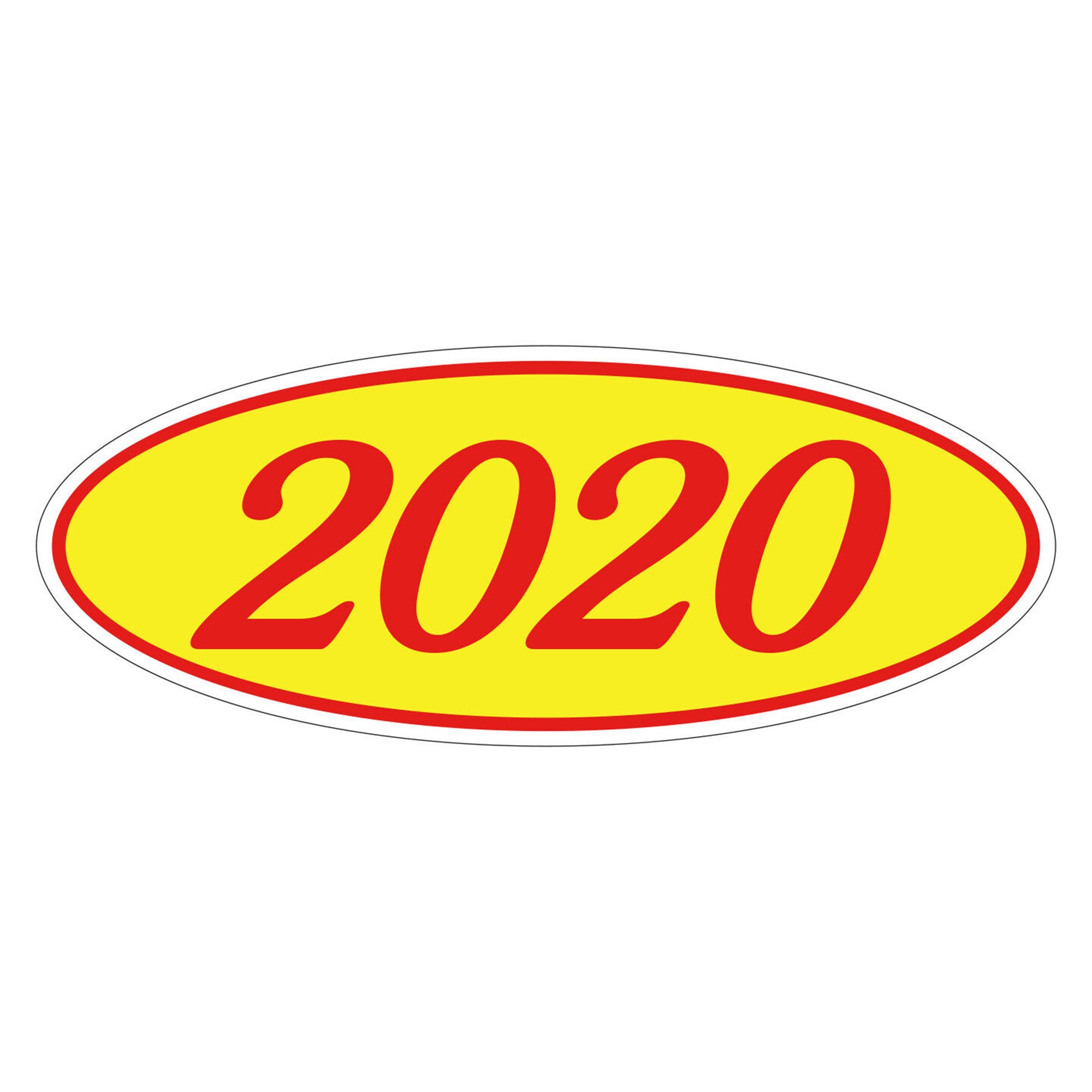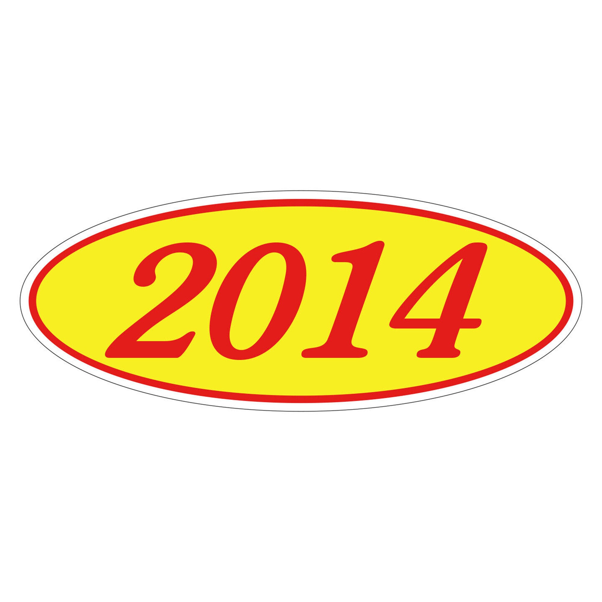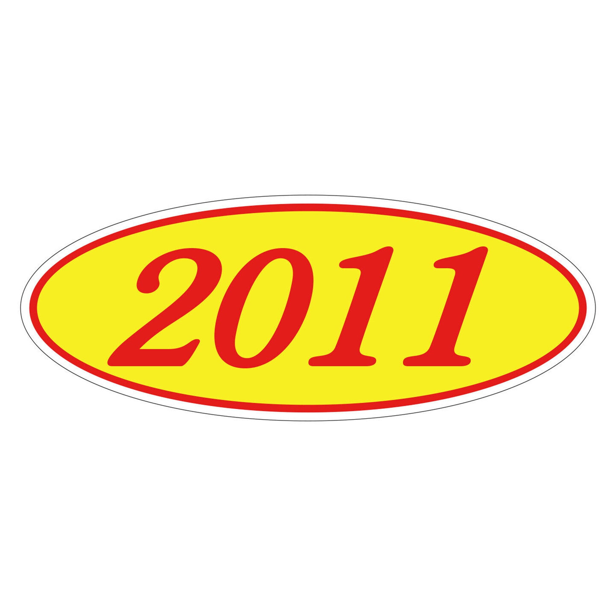 Red & Yellow Oval Year Stickers are made of durable, waterproof vinyl. These non-fade signs demand attention! Each year sticker is slit on the back for easy application. Red & Yellow Oval Year Stickers are neatly shrink-wrapped in packs of a dozen with a cardboard backer to prevent curling during storage. Red & Yellow Oval Year Stickers measure 14"W x 5 1/2"H.