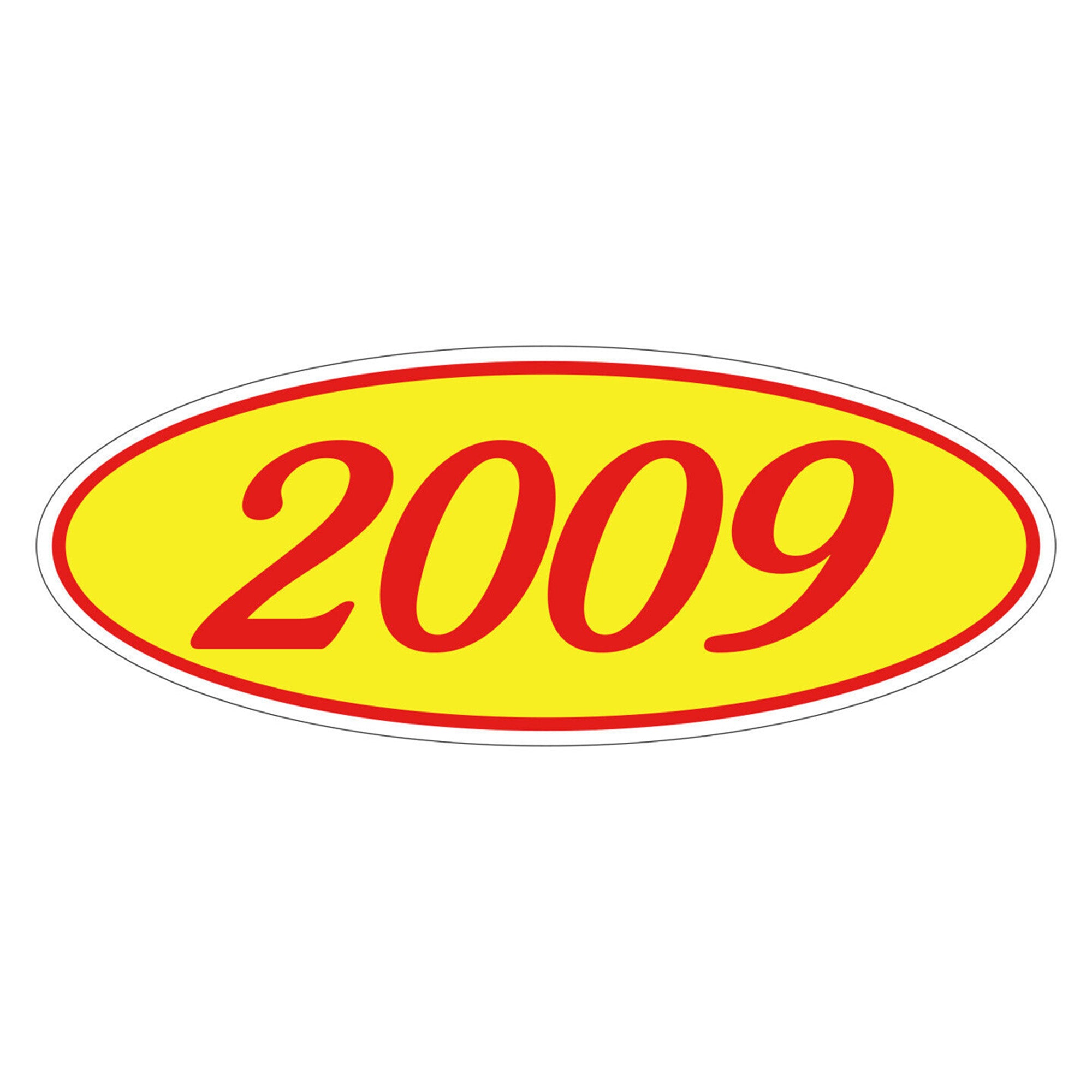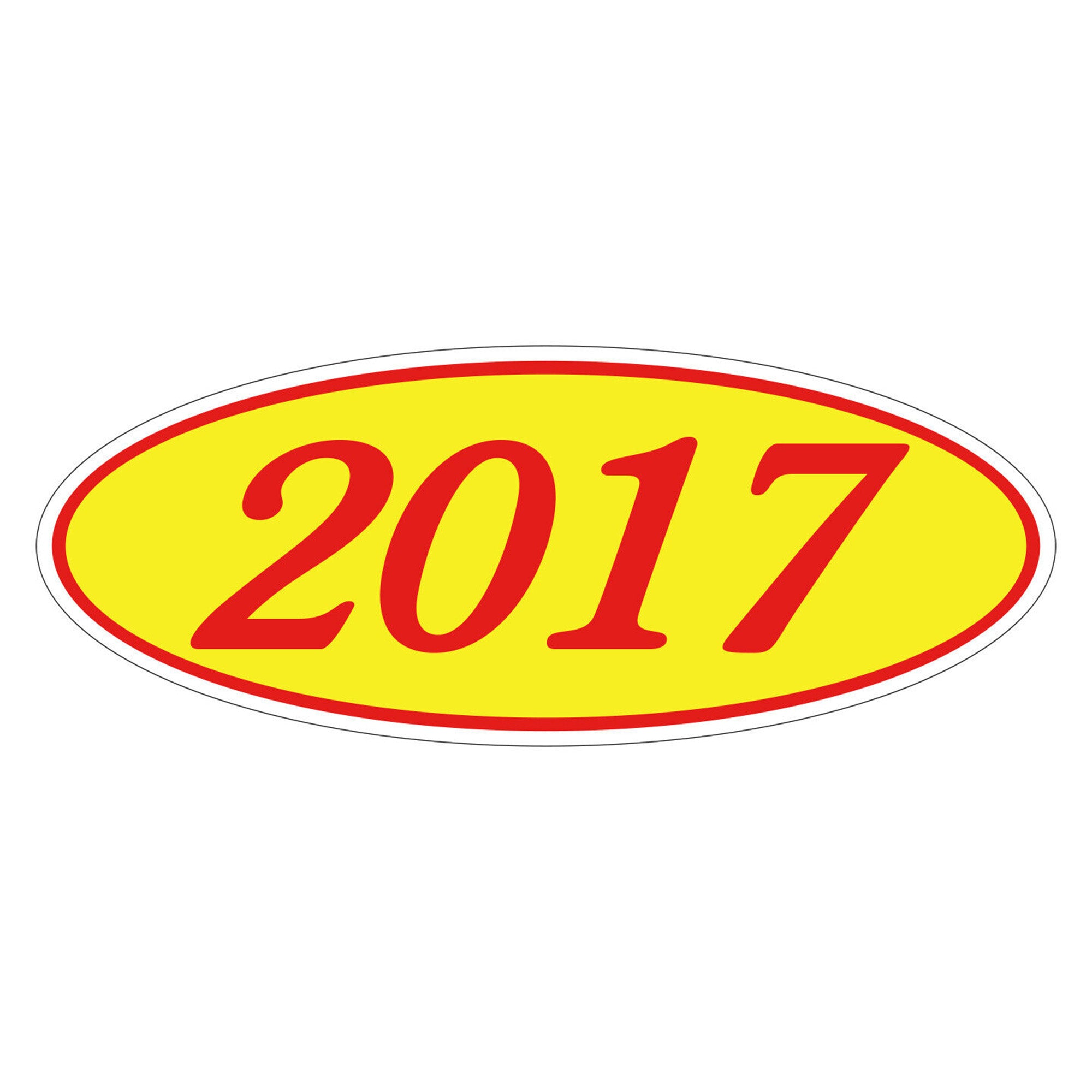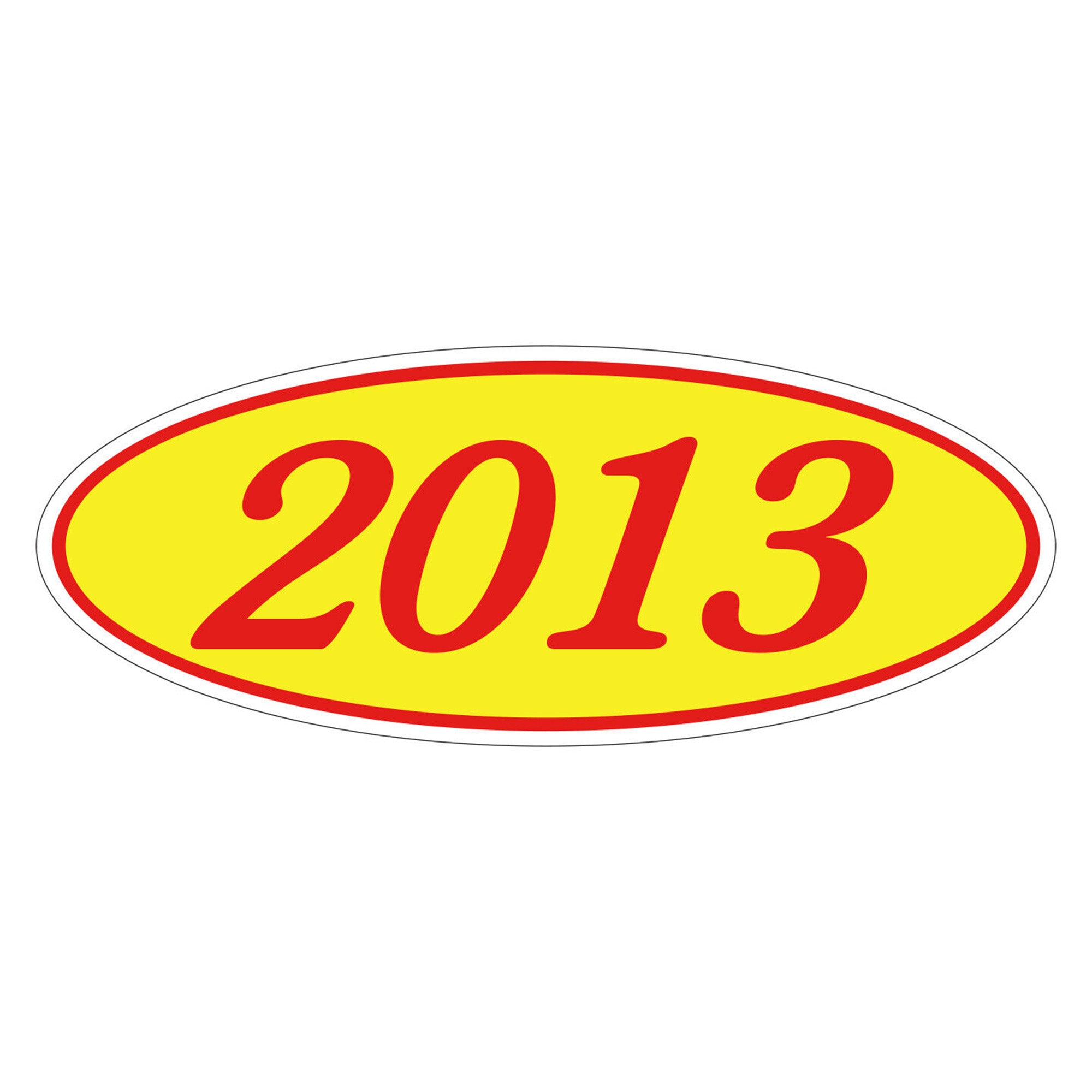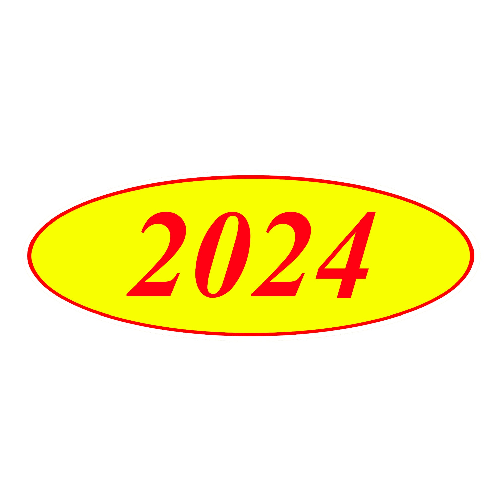Red & Yellow Oval Year Stickers are made of durable, waterproof vinyl. These non-fade signs demand attention! Each year sticker is slit on the back for easy application. Red & Yellow Oval Year Stickers are neatly shrink-wrapped in packs of a dozen with a cardboard backer to prevent curling during storage. Red & Yellow Oval Year Stickers measure 14"W x 5 1/2"H.